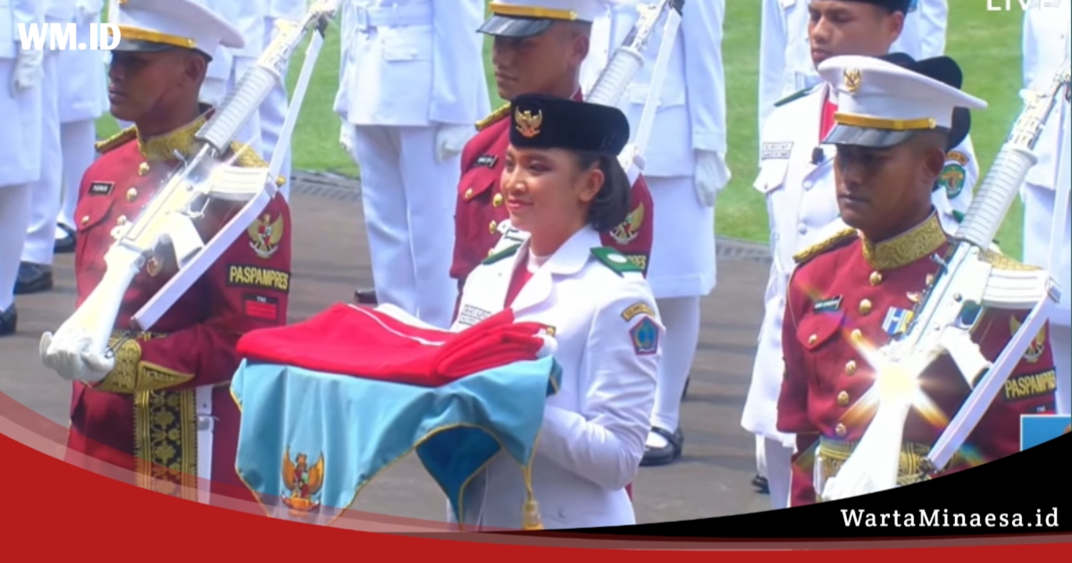 WME, Tomohon – Bianca Alessia Christabella Lantang, pelajar SMA Lentera Harapan Tomohon, Sulawesi Utara, ditunjuk sebagai pembawa baki bendera Merah Putih pada upacara peringatan detik-detik Proklamasi Kemerdekaan Republik Indonesia ke-80 di Istana Merdeka, Minggu (17/8/2025).