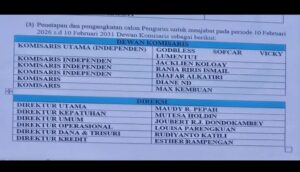 Para direksi yang dimaksud, yakni Mutesa Holdin sebagai Direktur Kepatuhan, Joubert R.J. Dondokambey sebagai Direktur Umum.